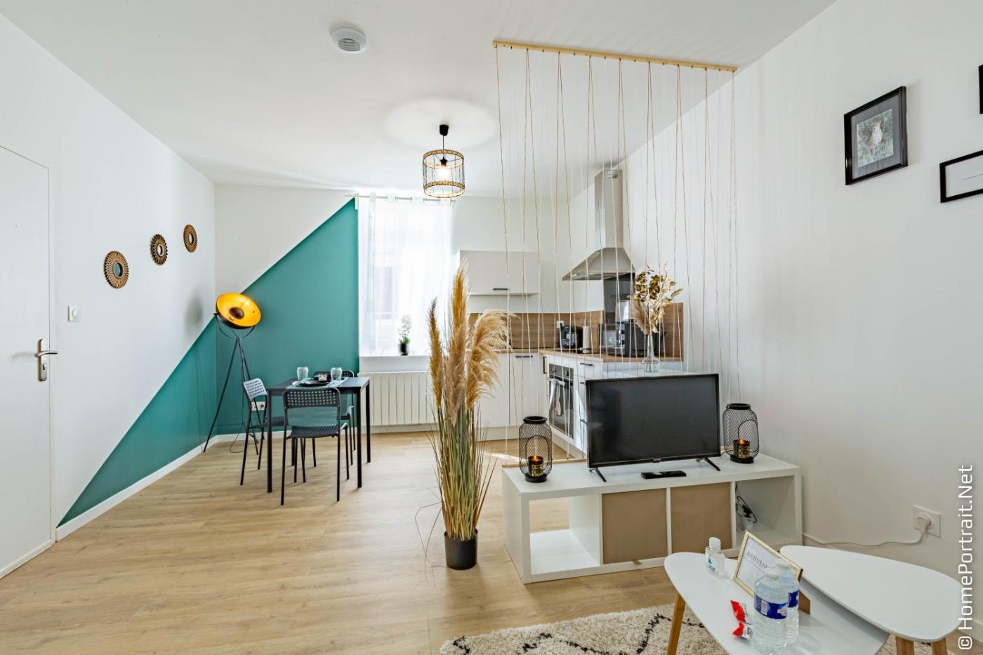 Appartement 1 Chambre. Cet appartement comprend une entrée privée, un salon et une chambre séparée. La salle de bains est pourvue d’une douche et d’un sèche-cheveux. La cuisine est équipée de plaques de cuisson, d’un réfrigérateur, d’un four et d’ustensiles. Offrant une vue sur le jardin, cet appartement insonorisé dispose dune télévision à écran plat avec des services de streaming, dun lave-linge et dune machine à café. Ce logement comprend 2 lits. ;