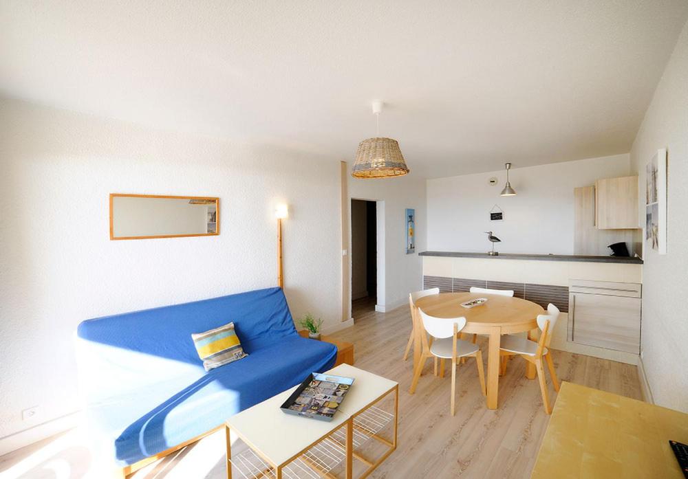 Appartement - Vue sur Mer. Cet appartement comprend un coin nuit avec 2 lits simples ou un lit double, un salon avec un canapé-lit et une cuisine équipée. La salle de bains privative est pourvue d’une baignoire ou d’une douche. Une terrasse meublée est également disponible. ;
