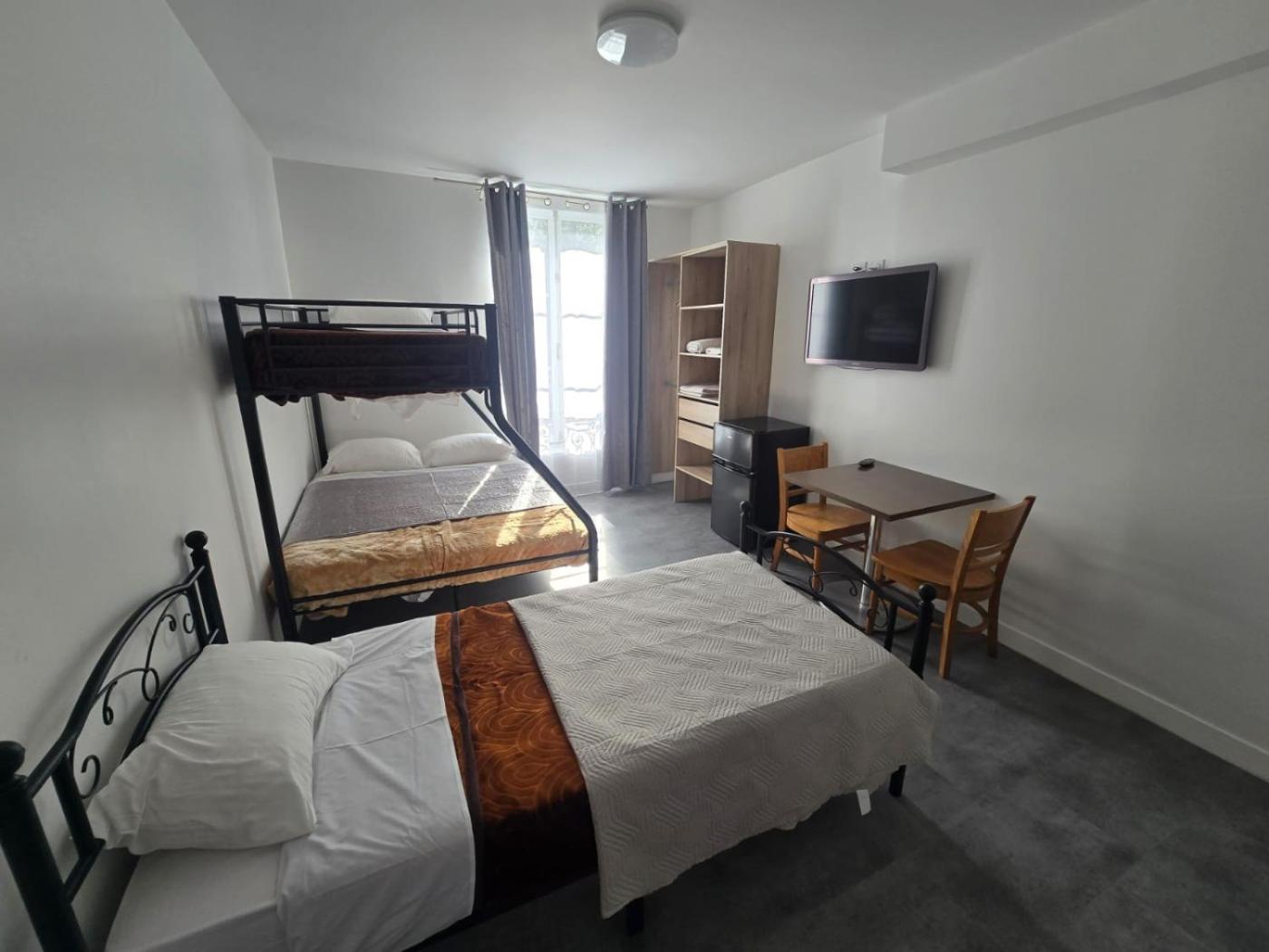 Chambre Triple. The triple room offers a wardrobe and parquet floors, as well as a private bathroom featuring a walk-in shower. This triple room provides heating, a flat-screen TV and city views. The unit offers 2 beds. ;