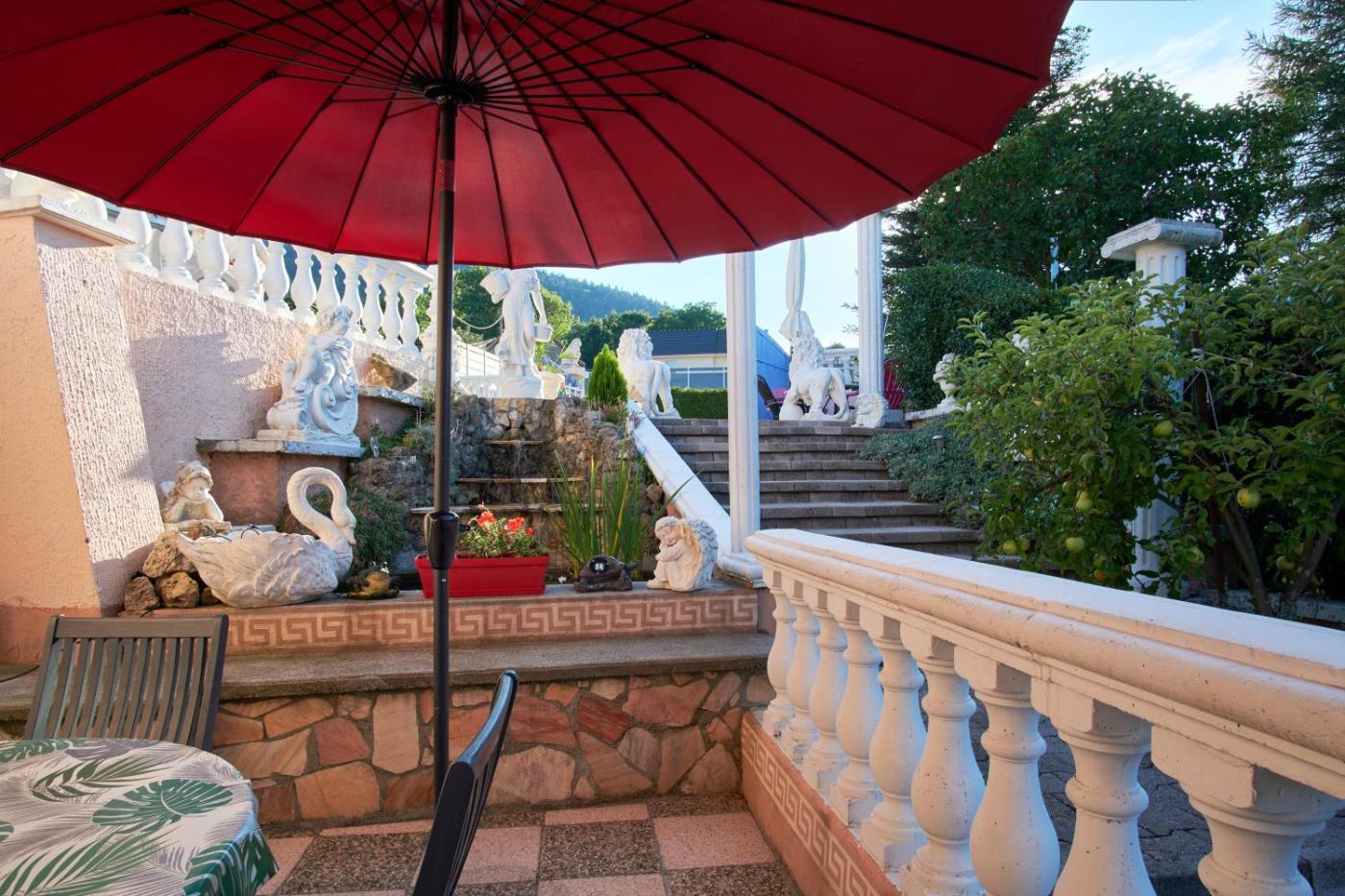 Two-Bedroom Deluxe Apartment with Garden View. Boasting a private entrance, this spacious apartment also comes with 2 separate bedrooms and 1 bathroom with a shower and a hairdryer. Guests can make meals in the kitchen that features a dishwasher, kitchenware, an oven and a microwave. The air-conditioned apartment features a TV with cable channels, a washing machine, a coffee machine, a barbecue as well as garden views. The unit has 3 beds.