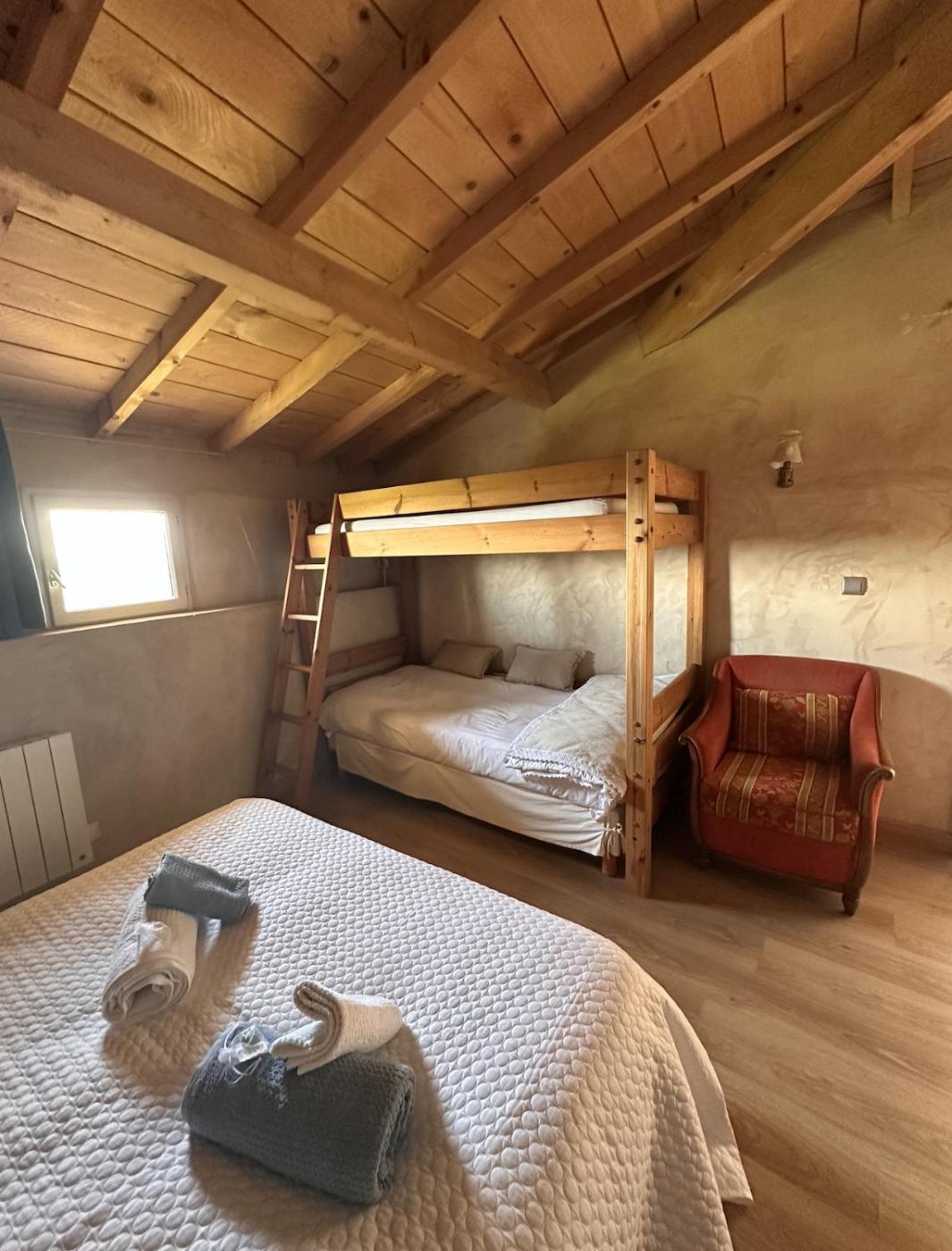 Chambre Quadruple - Vue sur Montagnes. The fully equipped kitchen features a stovetop, a refrigerator, kitchenware and an oven. The quadruple room provides soundproof walls, a tea and coffee maker, a terrace with garden views as well as a private bathroom featuring a shower. The unit offers 2 beds.