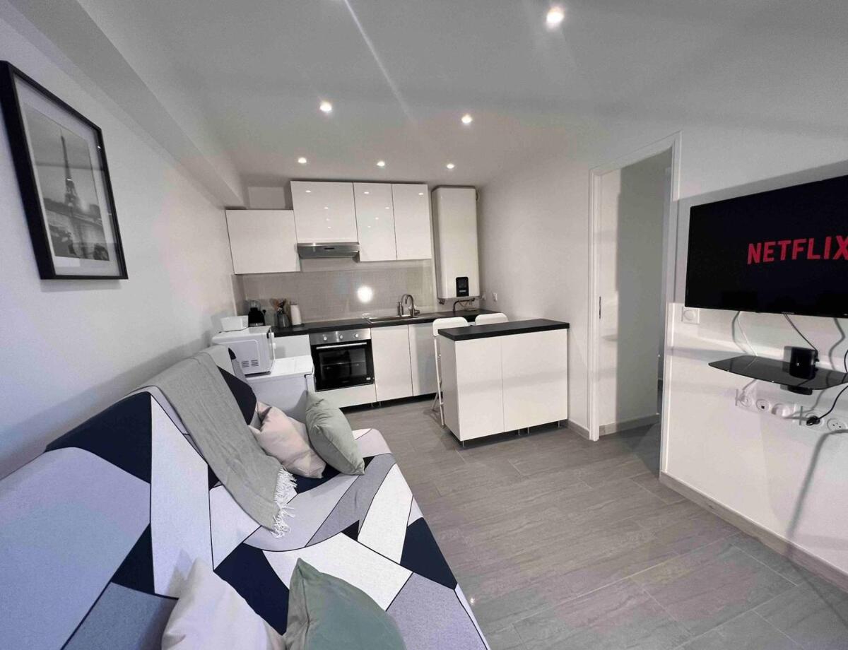 Cet appartement comporte 1 chambre, une télévision à écran plat, ainsi qu’une cuisine.
