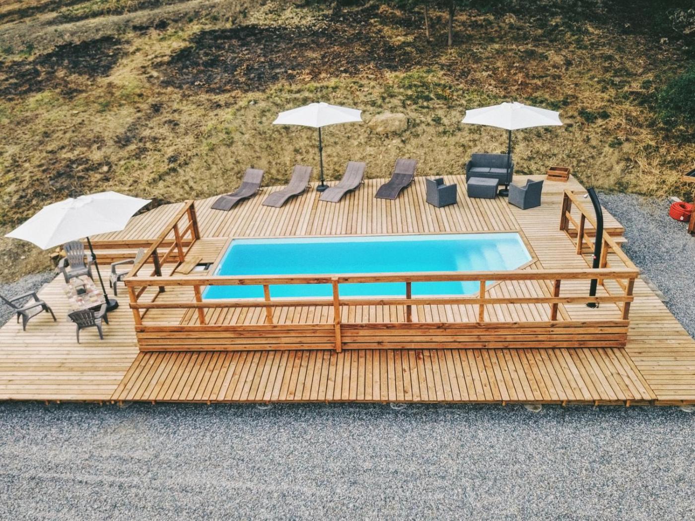 Chalet 2 Chambres. The pool with a view is the standout feature of this chalet. Boasting a private entrance, this air-conditioned chalet features 1 living room, 2 separate bedrooms and 1 bathroom with a shower. Guests will find a stovetop, a refrigerator, a dishwasher and kitchenware in the well-equipped kitchen. The chalet also comes with a barbecue. Featuring a terrace with garden views, this chalet also features soundproof walls and a flat-screen TV with satellite channels. The unit has 3 beds.