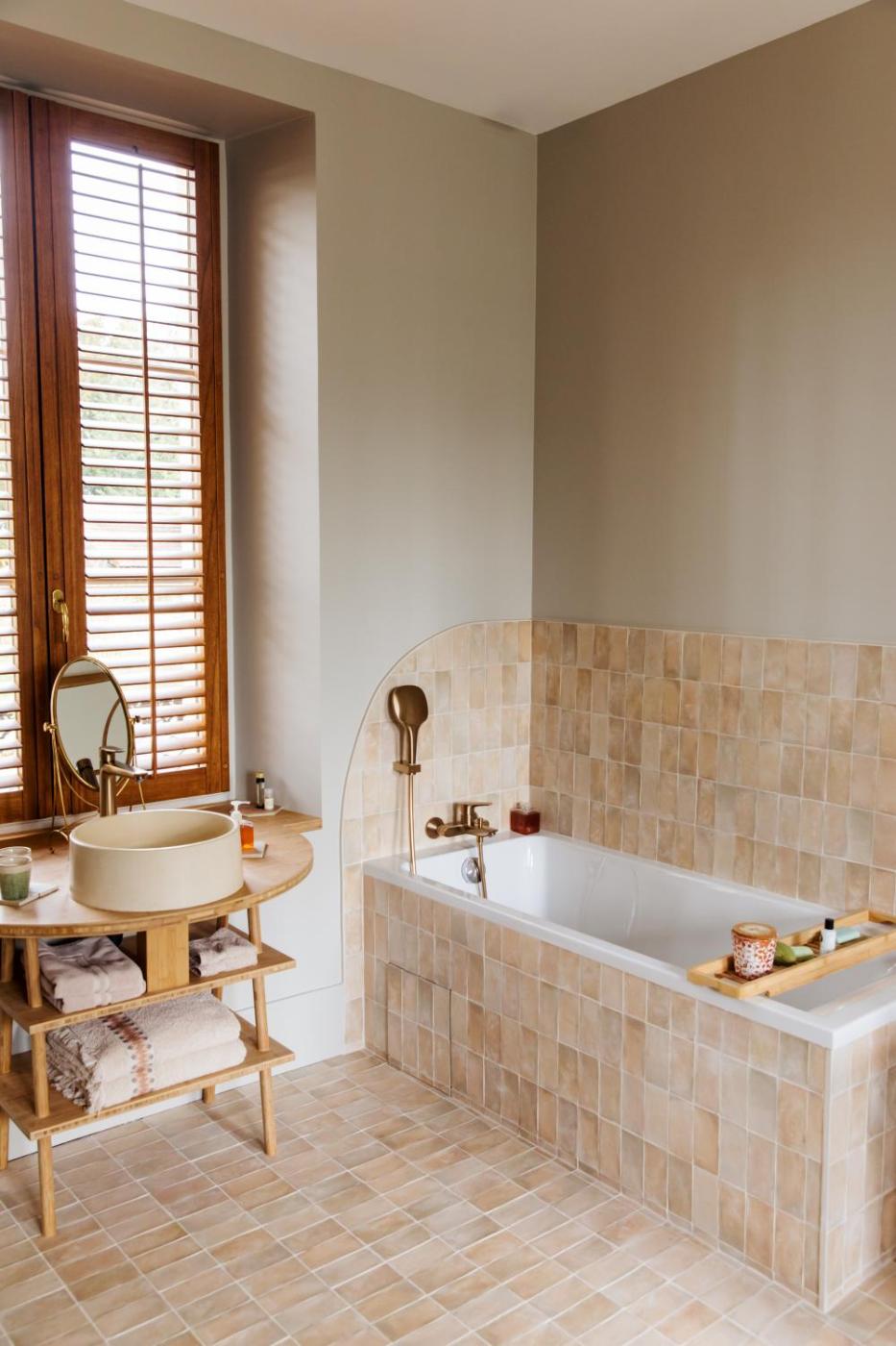 Chambre Double Deluxe avec Baignoire. The spacious double room offers a private entrance, a tea and coffee maker, a terrace with garden views as well as a private bathroom boasting a bath. The unit has 1 bed. ;