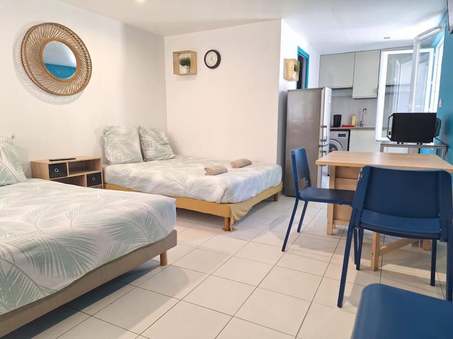 Appartement 1 Chambre. This apartment is comprised of 1 bedroom, kitchen, a terrace and 1 bathroom with a hairdryer. Meals can be prepared in the well-fitted kitchen, which comes with a stovetop, a refrigerator and a microwave. Featuring a balcony, this apartment also offers a washing machine, a private entrance and a flat-screen TV. The unit offers 2 beds.