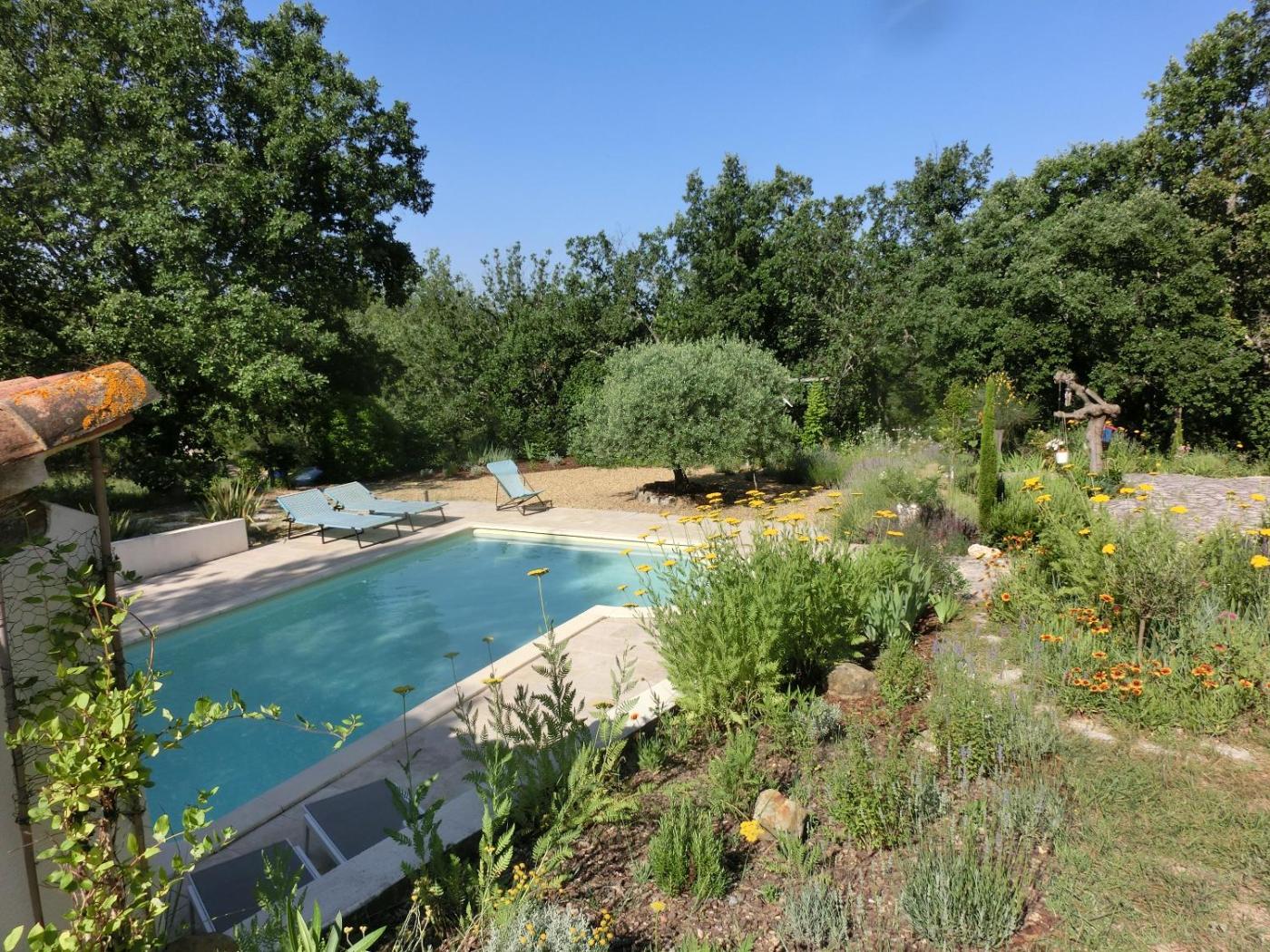 Chambre Double - Vue sur Jardin. The pool with a view is a top feature of this double room. The double room features a private entrance, soundproof walls, as well as a private bathroom boasting a shower and a hairdryer. Among the room amenities are a seating area, a dining area, a wardrobe as well as an outdoor dining area and garden views. The unit has 1 bed.
