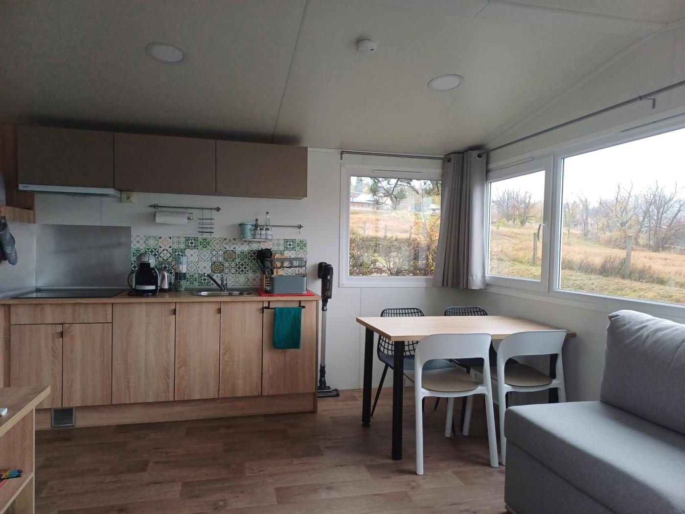 Mobile Home. The air-conditioned mobile home features 2 bedrooms and 1 bathroom with a shower and a hairdryer. Meals can be prepared in the well-fitted kitchen, which is equipped with a refrigerator, kitchenware, a microwave and a toaster. Featuring a terrace with mountain views, this mobile home also provides a coffee machine and a flat-screen TV. The unit offers 3 beds.