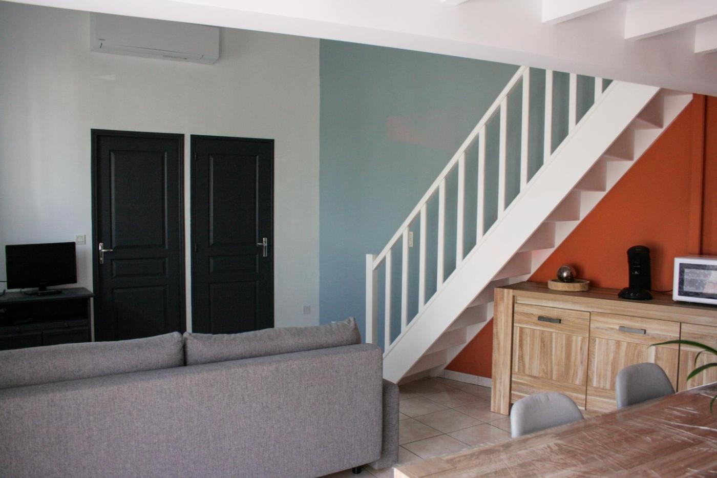 Appartement 1 Chambre. Featuring a private entrance, this air-conditioned apartment consists of 1 living room, 1 separate bedroom and 1 bathroom with a shower and a hairdryer. Guests will find a stovetop, a refrigerator, a dishwasher and kitchenware in the kitchen. The apartment also offers a barbecue. The spacious apartment provides a washing machine, soundproof walls, a tea and coffee maker as well as a terrace with garden views. The unit offers 2 beds.