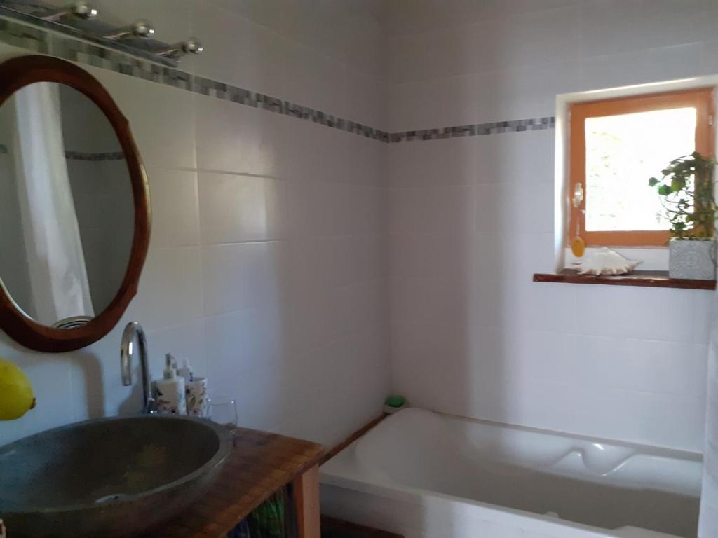 Chambre Double. The double room features a private entrance, a tea and coffee maker, a terrace with garden views as well as a shared bathroom boasting a bath. The unit has 1 bed. ;