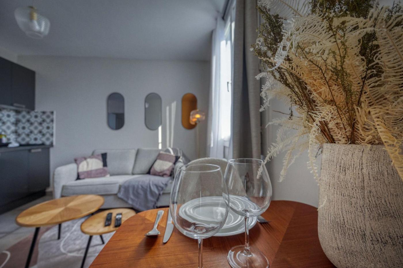 Appartement 1 Chambre. This apartment features 1 living room, 1 separate bedroom and 1 bathroom with a shower and a hairdryer. Meals can be prepared in the kitchen, which has a stovetop, a refrigerator, kitchenware and an oven. The apartment features soundproof walls, a tea and coffee maker, a seating area, a flat-screen TV with cable channels, as well as mountain views. The unit has 2 beds.