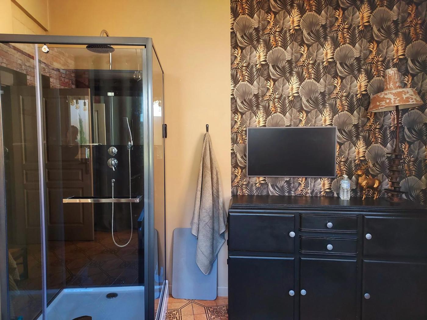 Chambre Double - Vue sur Parc. Boasting 1 bedroom, this holiday home has 1 bathroom with a shower, a seating area and terraceyou can relax. In the kitchen, guests will find a stovetop, a refrigerator, kitchenware and an oven. The holiday home features a flat-screen TV, a coffee machine, a dining area, heating as well as garden views. The unit offers 1 bed. ;