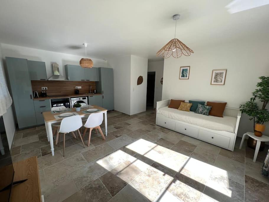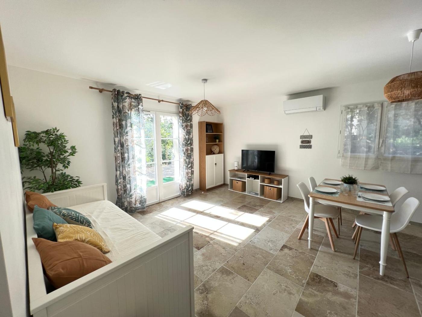 Maison 1 Chambre. Boasting a private entrance, this air-conditioned holiday home comes with 1 living room, 1 separate bedroom and 1 bathroom with a walk-in shower and a hairdryer. Guests can make meals in the kitchen that features a stovetop, a refrigerator, kitchenware and an oven. Featuring a terrace with garden views, this holiday home also features a washing machine and a flat-screen TV with streaming services. The unit has 2 beds.