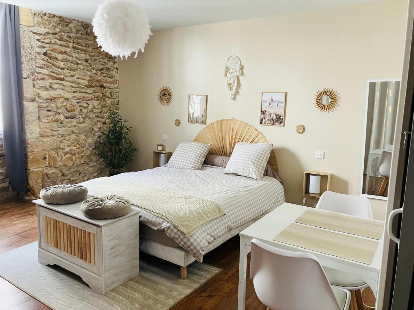 Chambre Double avec Salle de Bains Privative. The double room offers a tea and coffee maker, a dining area, as well as a private bathroom featuring a bath and a shower. The unit offers 1 bed. ;