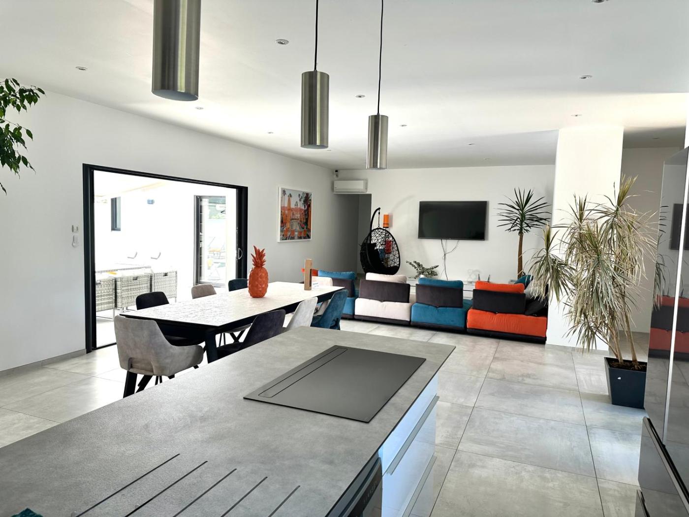 Villa avec Piscine Privée. This villas standout features are the pool with a view and hot tub. Boasting a private entrance, this air-conditioned villa features 1 living room, 4 separate bedrooms and 3 bathrooms with a walk-in shower and a bath. Guests will find a stovetop, a refrigerator, a dishwasher and kitchenware in the fully equipped kitchen. The villa also comes with a barbecue. Featuring a terrace with garden views, this villa also features a washing machine and a flat-screen TV with cable channels. The unit has 4 beds.