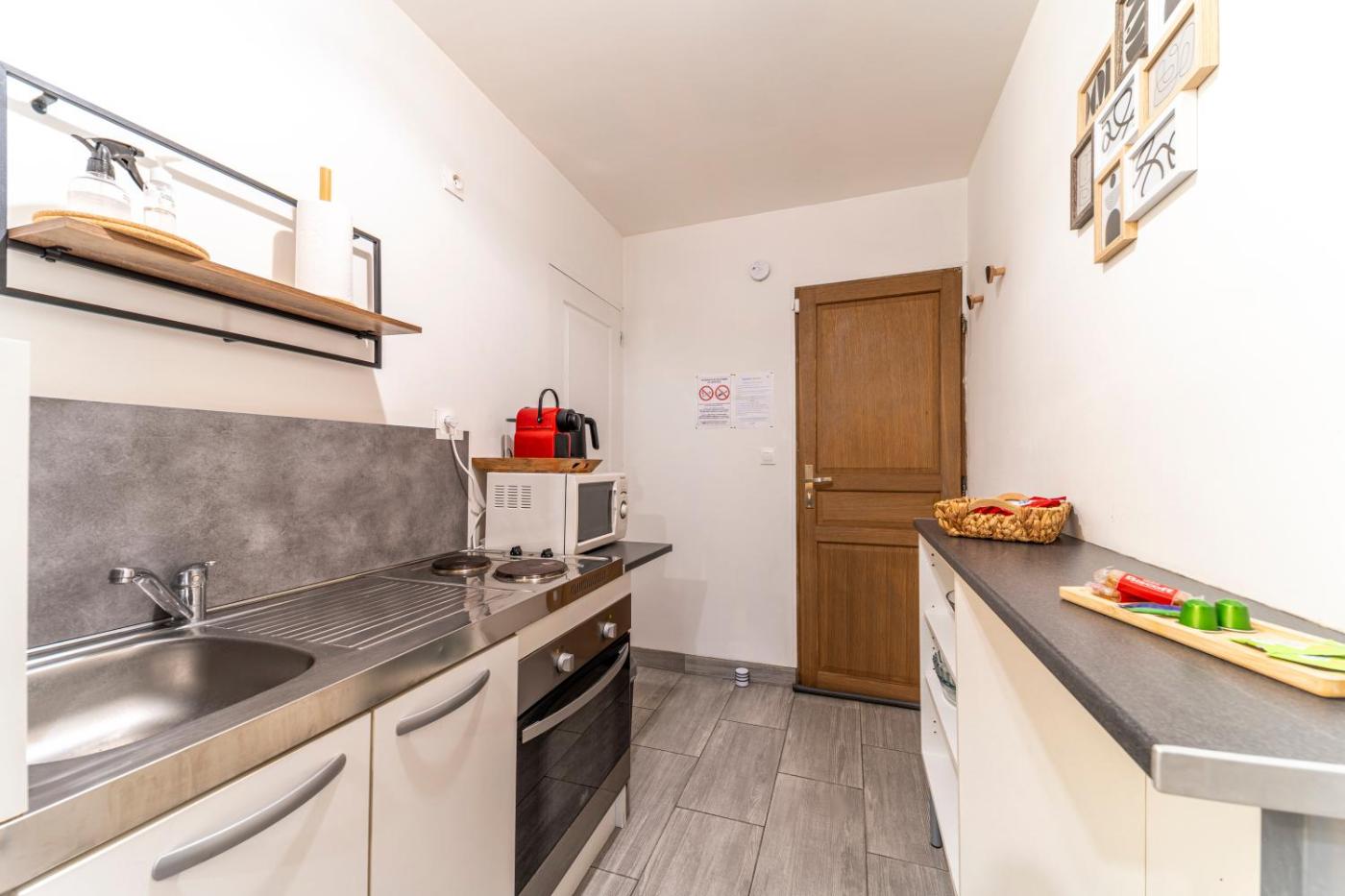 Appartement 1 Chambre. The apartment has 1 bedroom and 1 bathroom with a walk-in shower and free toiletries. In the kitchen, guests will find a stovetop, a refrigerator, kitchenware and an oven. This apartment features a washing machine, a tea and coffee maker, flat-screen TV with streaming services, as well as chocolate for guests. The unit has 1 bed.