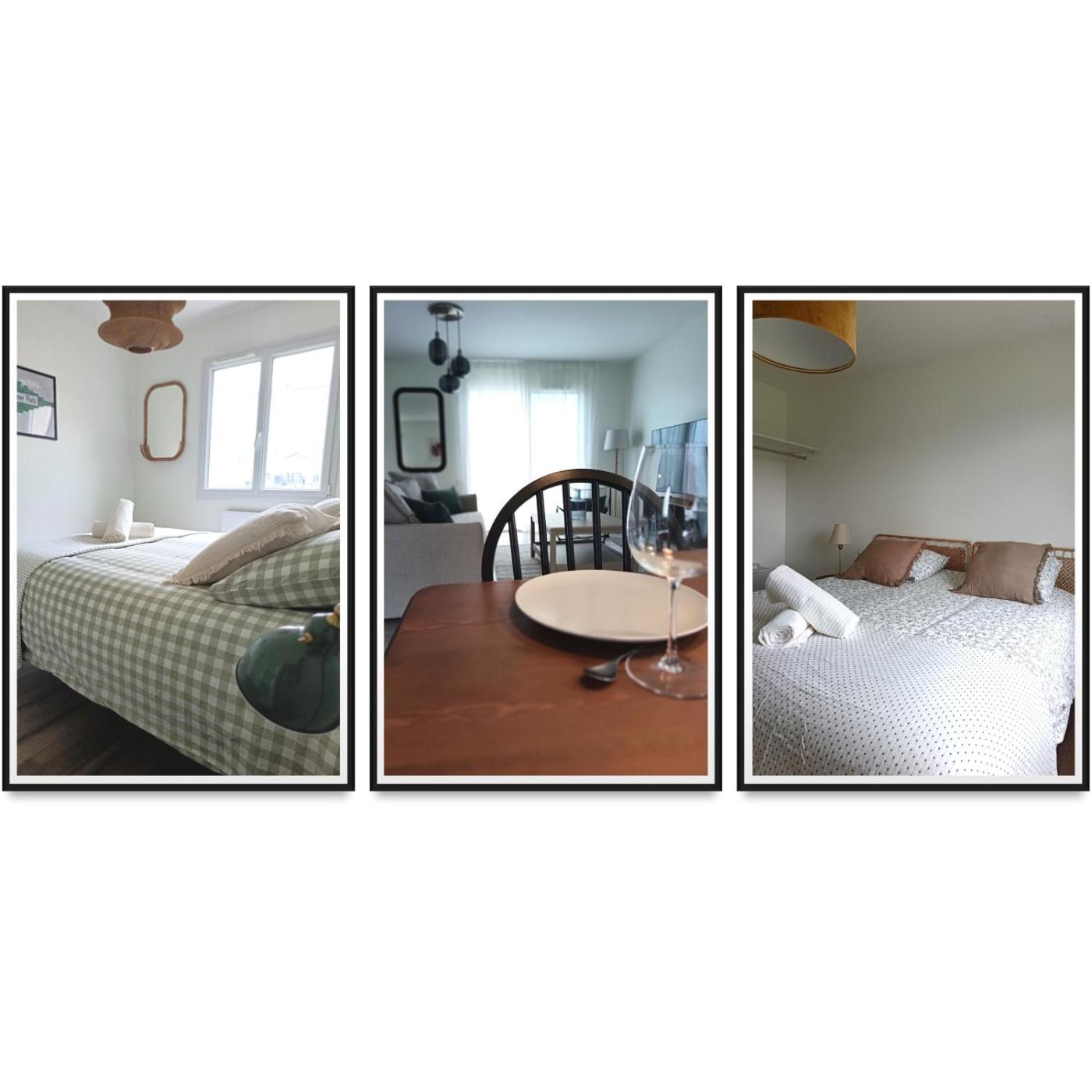 Maison 3 Chambres. This spacious holiday home is comprised of 1 living room, 3 separate bedrooms and 1 bathroom with a shower and a hairdryer. The well-fitted kitchen features a stovetop, a refrigerator, a dishwasher and kitchenware. Featuring a terrace with garden views, this holiday home also offers a washing machine and a flat-screen TV with cable channels. The unit offers 3 beds.