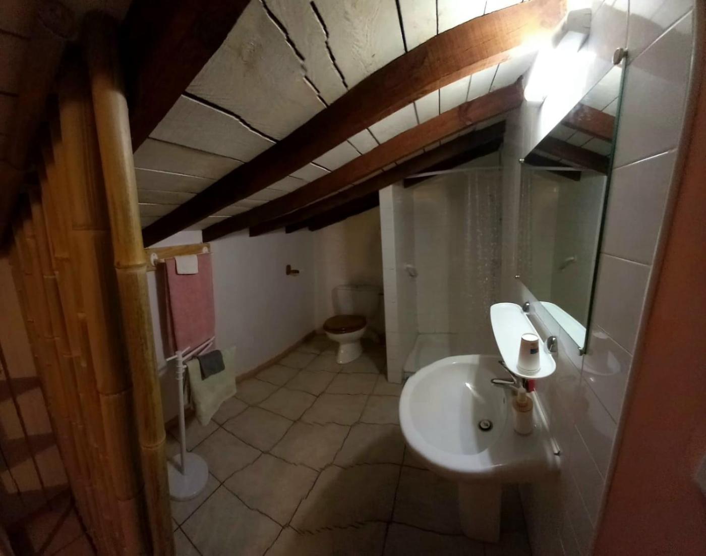 Chambre Triple avec Terrasse. Offrant une vue sur la campagne, cette chambre spacieuse de 25 m2 dispose dune salle de bains privative, ainsi que dun lit double et dun lit simple. L’hébergement possède également une petite terrasse privée orientée à lestau sud. Le logement présente une décoration dépoque avec du parquet et des poutres en bois. ;
